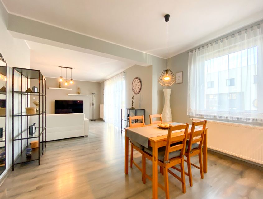 - Charakterystyka mieszkania: 93,31 m², 4 pokoje, 2 łazienki; stan: wysoki standard