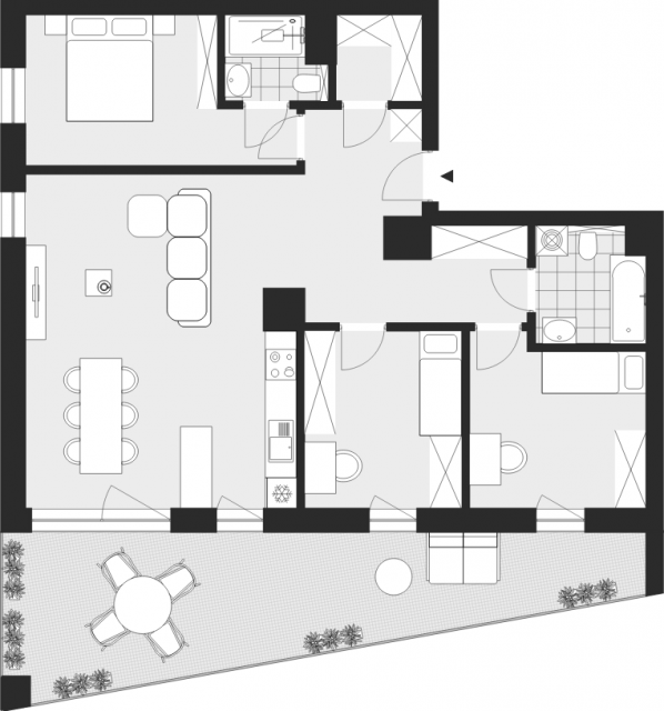 4-pokojowe mieszkanie z aneksem kuchennym, dwiema łazienkami, garderobą i tarasem, znajdujące się w nowej inwestycji Vanda Park w Chorzowie.