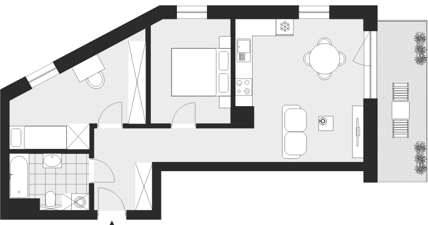 - Charakterystyka mieszkania: 58,66 m², 3 pokoje, 1 łazienka; stan: deweloperski