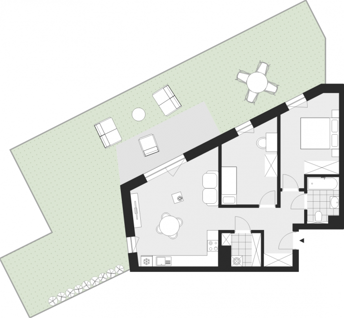 3-pokojowe mieszkanie z aneksem kuchennym, łazienką, garderobą/pralnią, tarasem i ogrodem, znajdujące się w nowej inwestycji Vanda Park w Chorzowie.