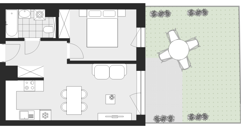2-pokojowe mieszkanie z aneksem kuchennym, łazienką, tarasem i ogrodem, znajdujące się w nowej inwestycji Vanda Park w Chorzowie.