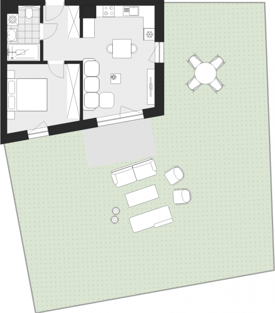 2-pokojowe mieszkanie z aneksem kuchennym, łazienką, tarasem i ogrodem, znajdujące się w nowej inwestycji Vanda Park w Chorzowie.